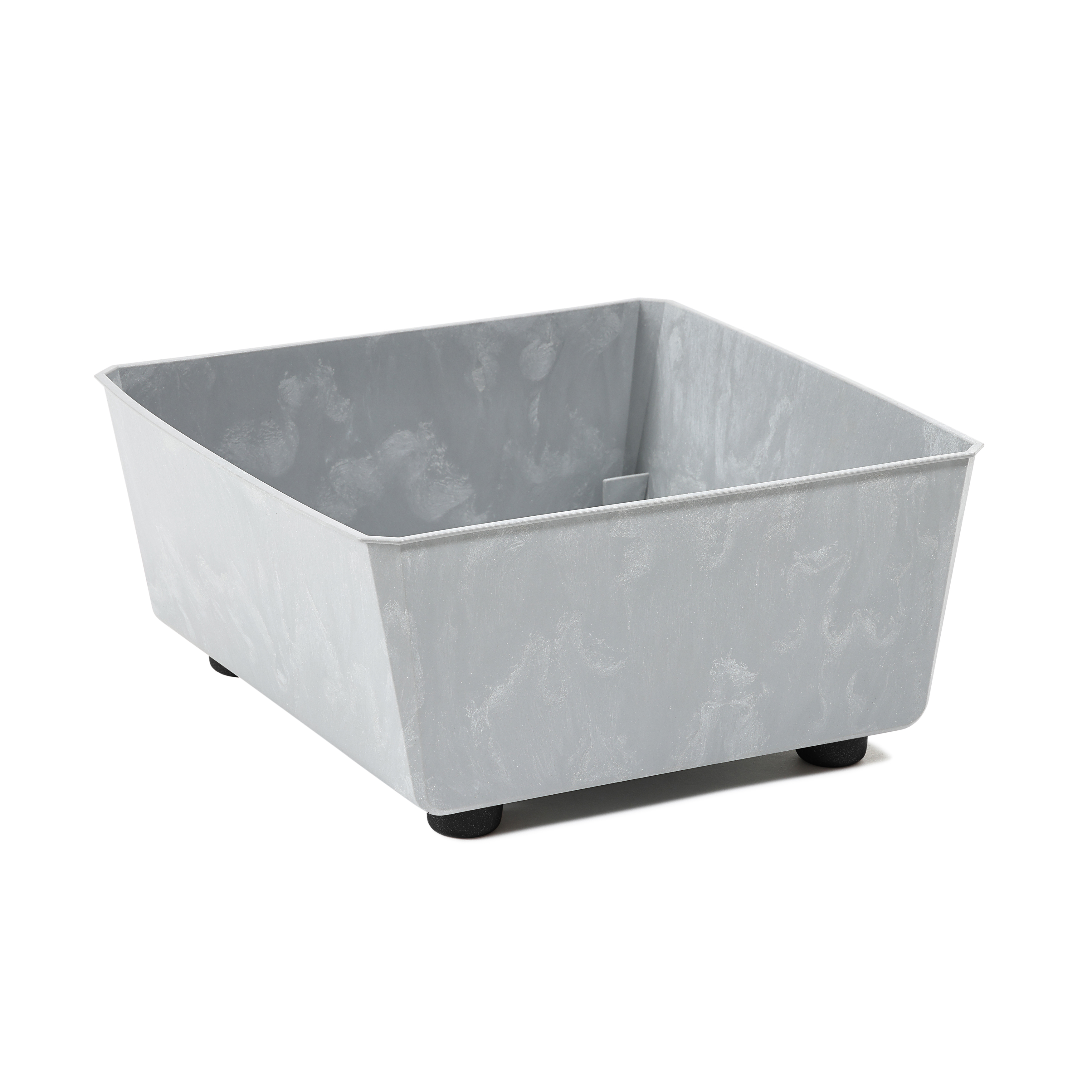 Podwyższone, dekoracyjne nóżki oraz gładka powierzchnia nadają skrzynce elegancki charakter, a jednocześnie zapewniają roślinom lepszą ekspozycję i stabilność.